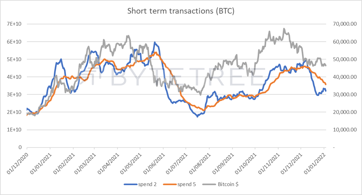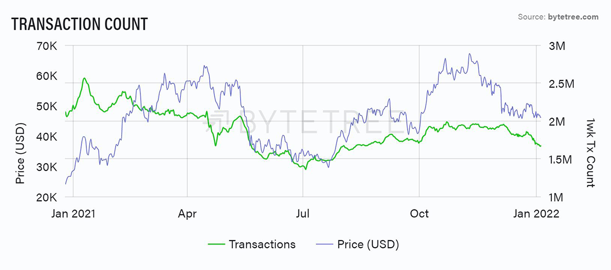 The Network Demand Model starts 2022 in subdued mode, remaining on a score of 1/6. The sole indicator remaining in positive territory is long-term transactions.