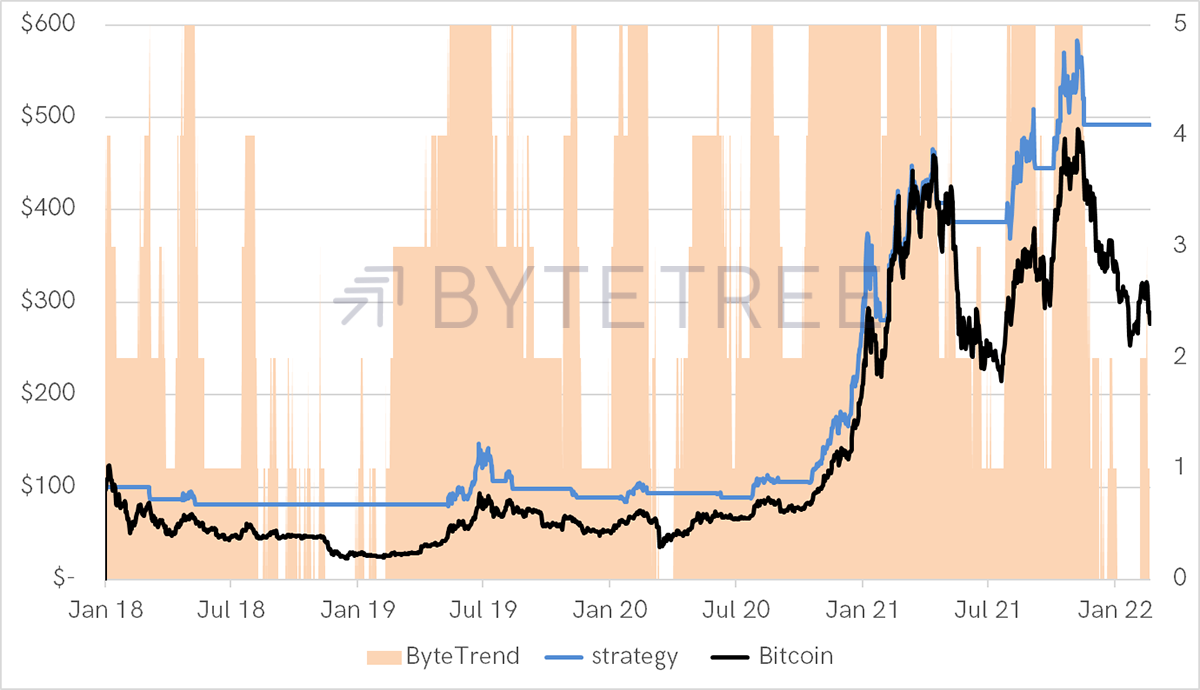 Source: ByteTree. ByteTrend trend-following strategy as described since 1 Jan 2018.