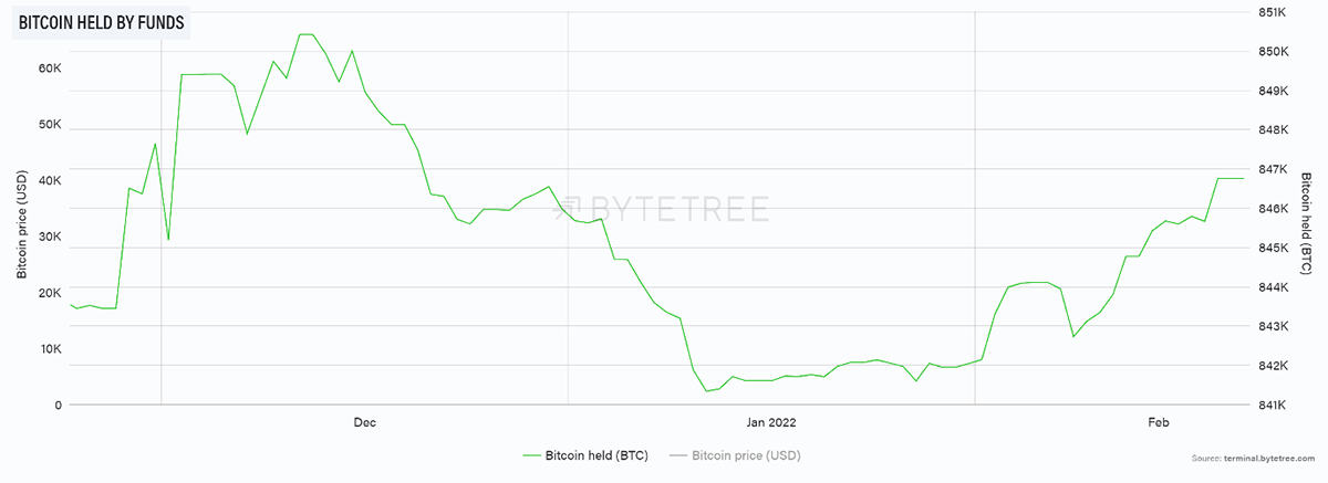 Source: ByteTree. Bitcoin held by funds over the past three months.