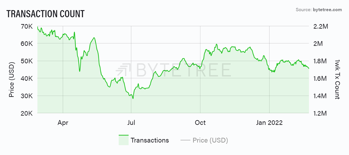 Source: ByteTree. Bitcoin transaction count over the past year.