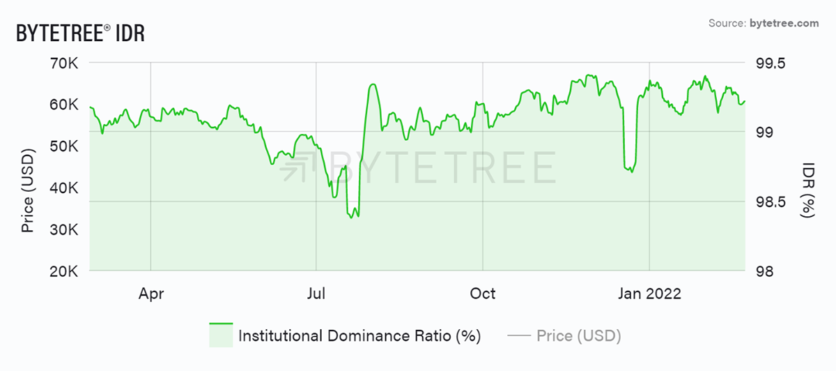 Source: ByteTree. Institutional Dominance Ratio (IDR) over the past year.