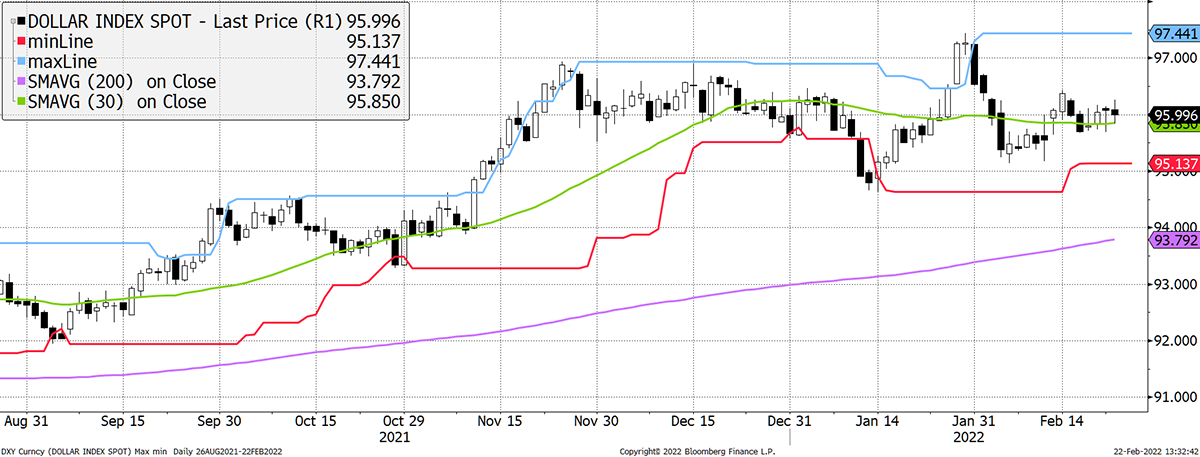 Source: Bloomberg. US dollar Index past six months.