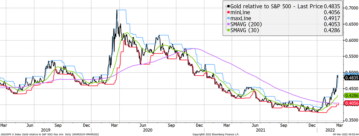 On 3 January this year, the gold to S&P ratio made its lowest print since 2005. Last year was bad for gold, but it wasn’t that bad as it fell by 3% in dollar terms. That’s a small loss but a big opportunity cost during the late stages of a major stockmarket bubble. This year gold is up 14%, while the S&P 500 is down 13% - how things change.