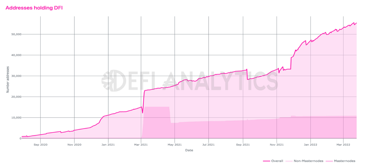 The current circulating DFI supply is around 507m. DFI can be staked for rewards on Cake DeFi, a DeFiChain partner that offers DeFi services and enables users to earn cash flow from their crypto assets for almost 35% APY. The yield is basically the issuance of the new coins. Once all the coins are minted, transaction fees will be used to reward stakers.