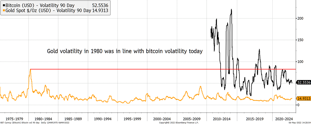 While we are talking about history, I was recently reminded that gold had 80% volatility at its peak in 1980. Doesn’t that make bitcoin look good?