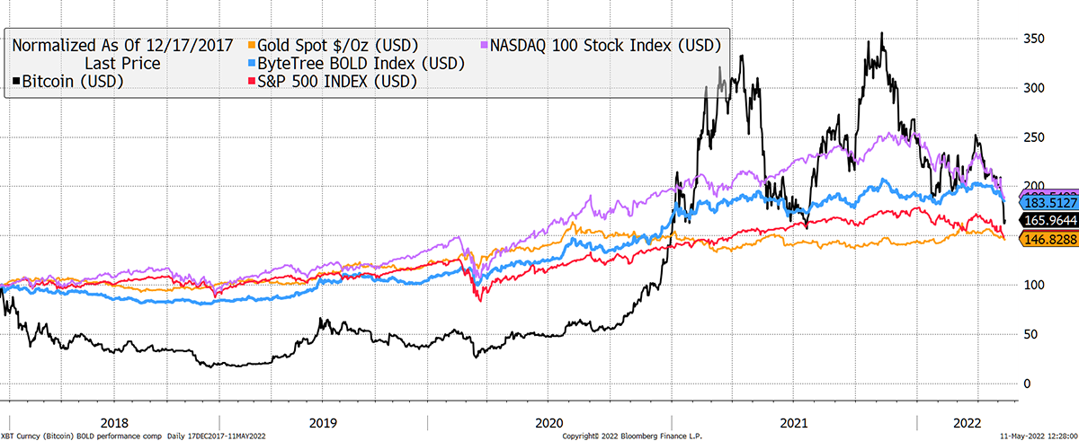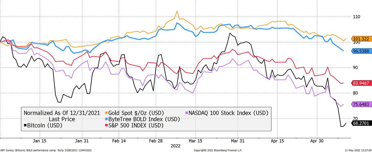 I mention bitcoin at this late stage because we have written much about our BOLD Index, which combines bitcoin and gold. It behaves extremely well over time as the two assets naturally offset each another.