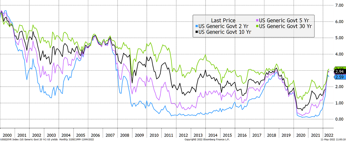 There are rate scenarios where the Fed could collapse the gold price, but seeing as we have already had the largest fall in bond prices since the 1980s, the worst headwinds are already behind us. Inflation is likely to be much stickier over the next decade as globalisation goes into reverse.