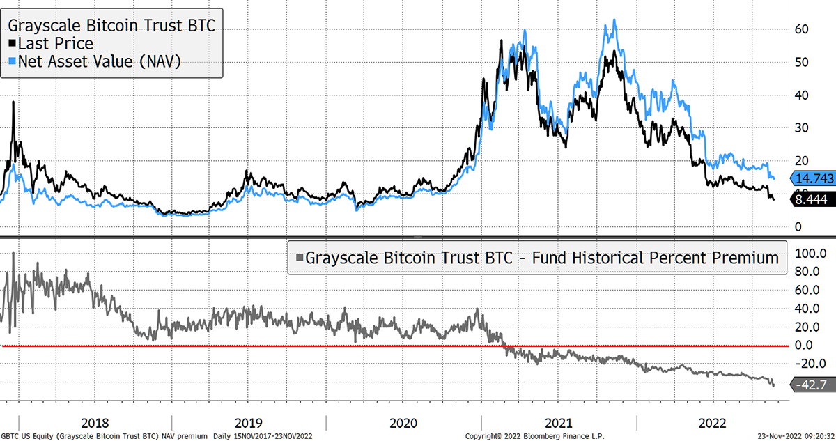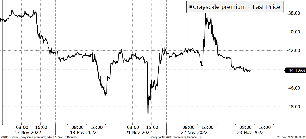 With the recent scandals in crypto, investors have questioned whether the coins exist. Have they been lent out and lost? They put out a statement confirming the coins were held by Coinbase. The Coinbase CEO, Brian Armstrong, verified this on Monday, which saw the intraday discount rally back from the excruciating 49%.