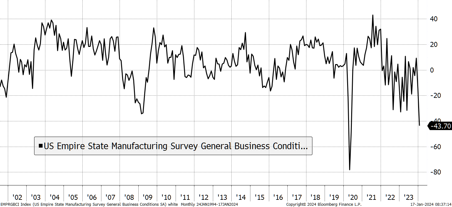 And it might just be. Yesterday, the US Empire Manufacturing Survey data was released at -43, against expectations of -5. That’s one hell of a miss, and it makes you wonder if it was a typo? It may improve next month, but it is the second-lowest reading on record, only surpassed by the pandemic. Best to take notice.