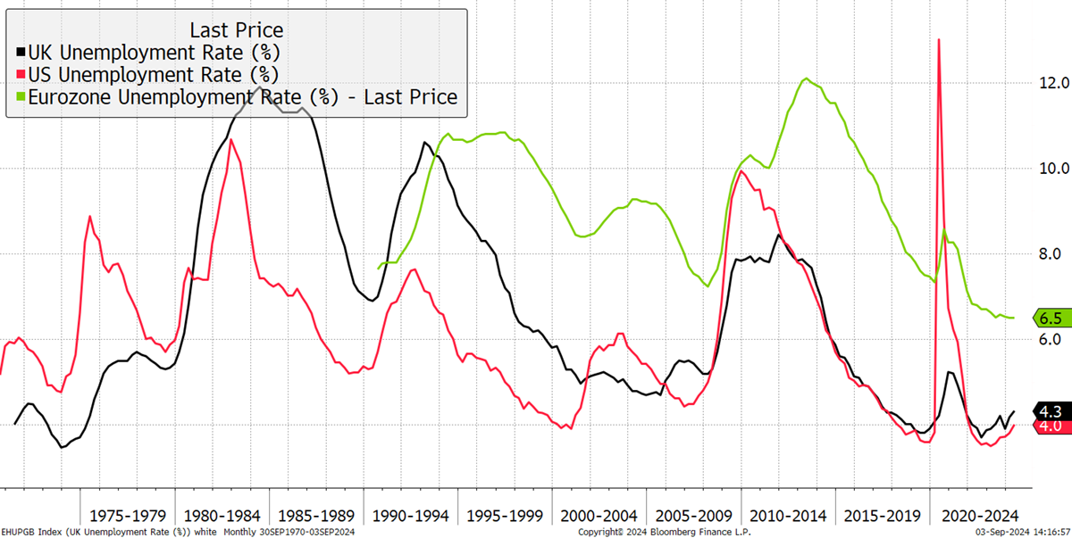 When you simply look at rates and inflation, the picture is similar around the world. But things are different when you add unemployment, which itself has become a trickier thing to measure due to the increasing amount of self-employed, part-time, and long-term sick.
