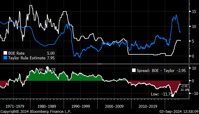 Here in the UK, the rule suggests rates need to rise by another 3%. We may well get another cut, but it will be nothing like a return to zero.