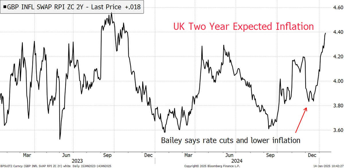 On 4 December 2024, just a few weeks ago, the Bank of England pointed to four rate cuts this year as inflation would come down faster than we thought it would. Much has changed since then, and UK inflation expectations have shot up. What looked like a slam dunk for a lower interest rate environment has sharply reversed.