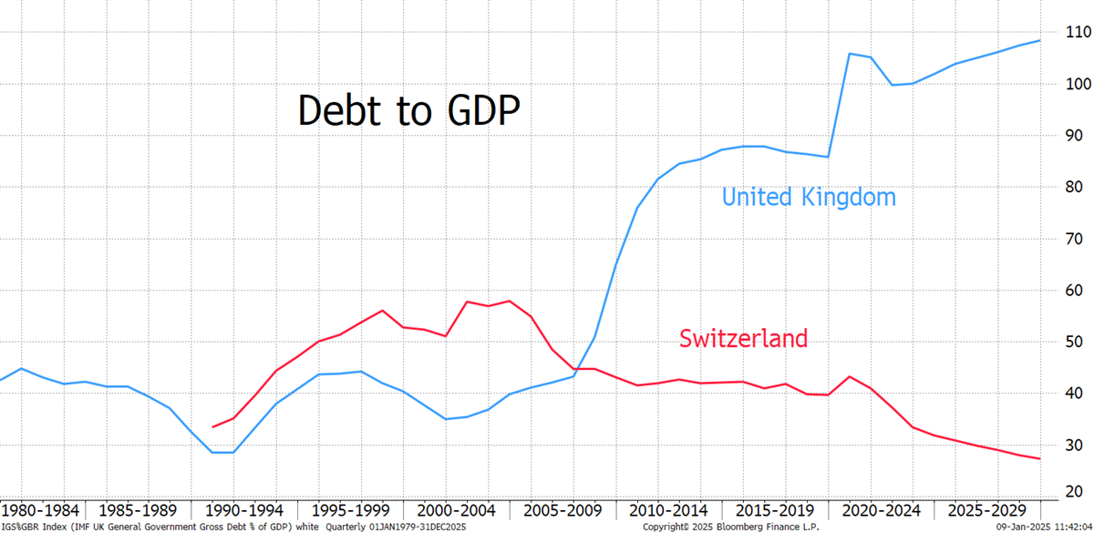 UK vs Switzerland Debt-to-GDP