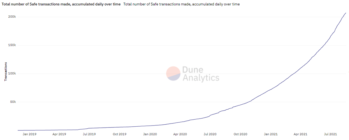 The data above highlights three interesting premises. Firstly, there is a growing demand for smart contract wallet security. This comes from individuals, teams, DAOs and institutions that do not want a single point of failure in their fund setup.