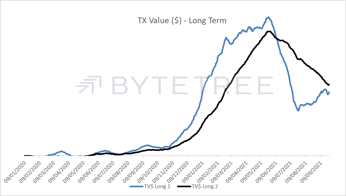 Long-term transaction indicators roll over just when looking likely to confirm a recovery.