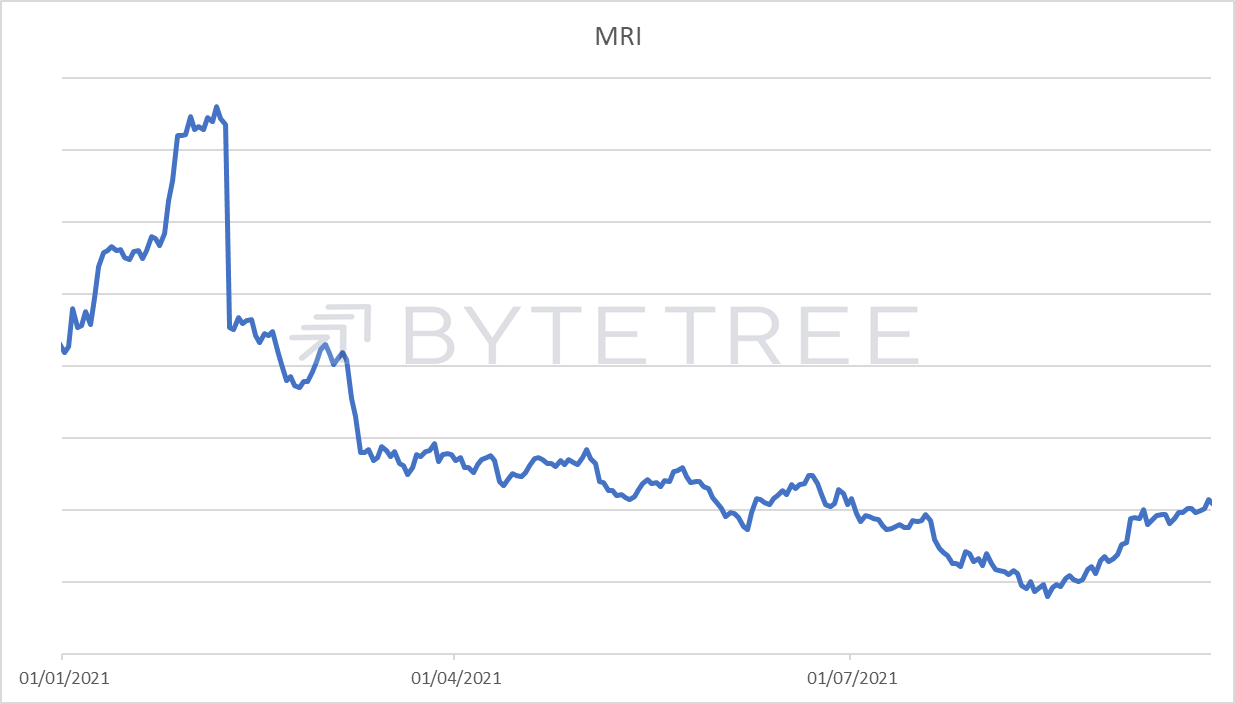 We can only speculate at this stage why this is and whether it is sustainable. A bullish view, however, would be that this move by the Chinese authorities has significantly de-risked bitcoin; firstly by removing a political threat to bitcoin’s control and secondly by reducing the network’s reliance on fossil fuels. These two factors will serve to strengthen Bitcoin’s security and independence, as well as enhance its green credentials. As institutions continue to move towards the space, so the valuation may be re-rating accordingly.