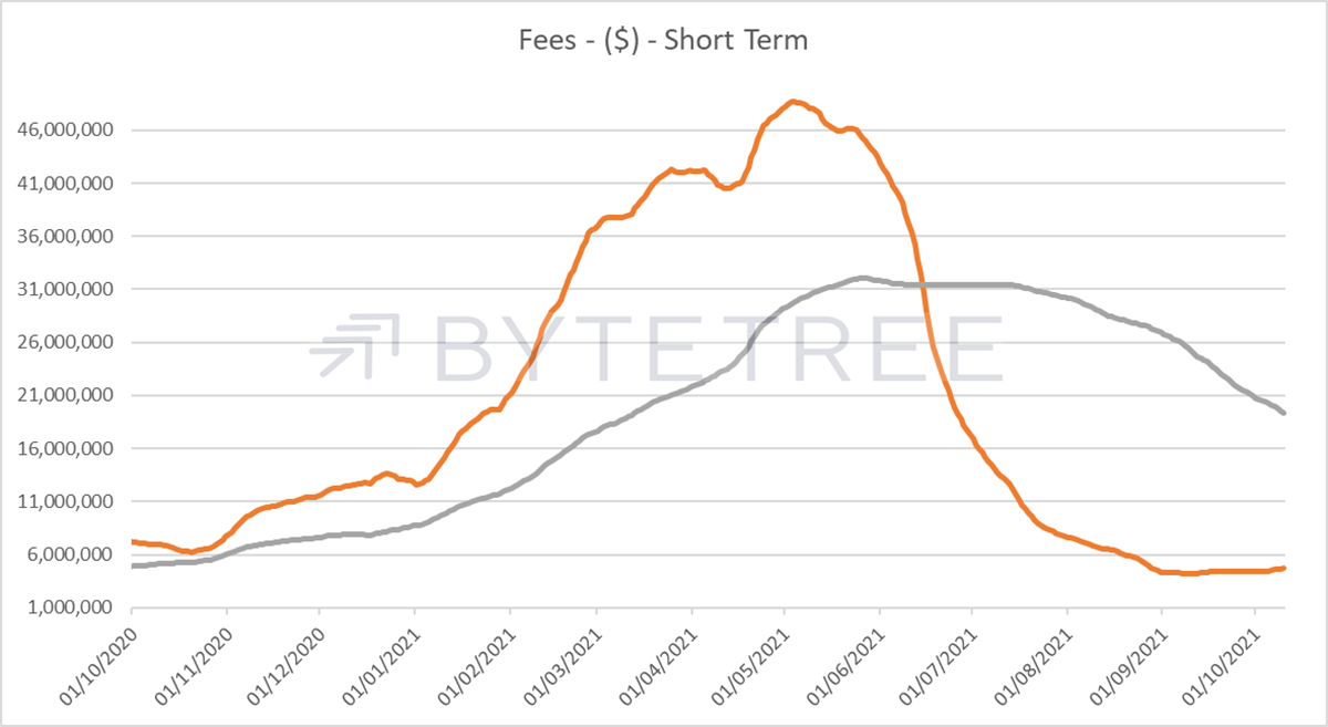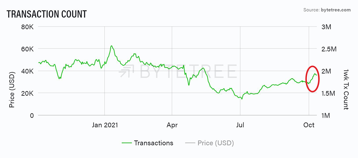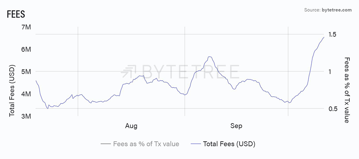 This is corroborated by a recent uptick in fees, which again shows us that the network is becoming more active. Fees have historically been the strongest cyclical indicator of network health.