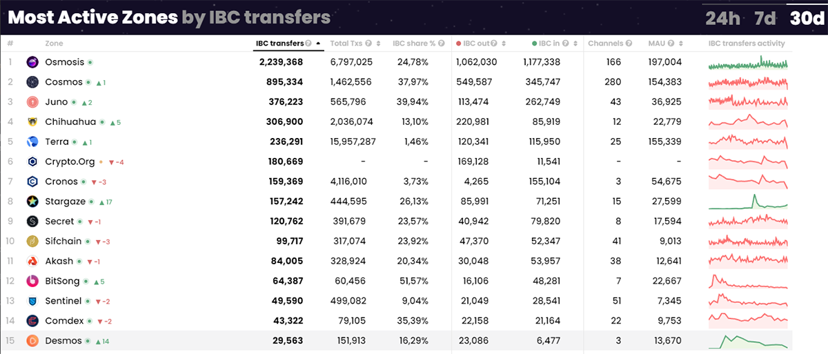 These data highways are generic, allowing connection between any two chains built within the Cosmos ecosystem. A little tweaking will even allow connection to chains beyond the Cosmos technology stack, including proof-of-stake chains like Avalanche or Polkadot. These ‘data highways’ have processed over 4 million transactions between blockchains over the last 30 days alone.