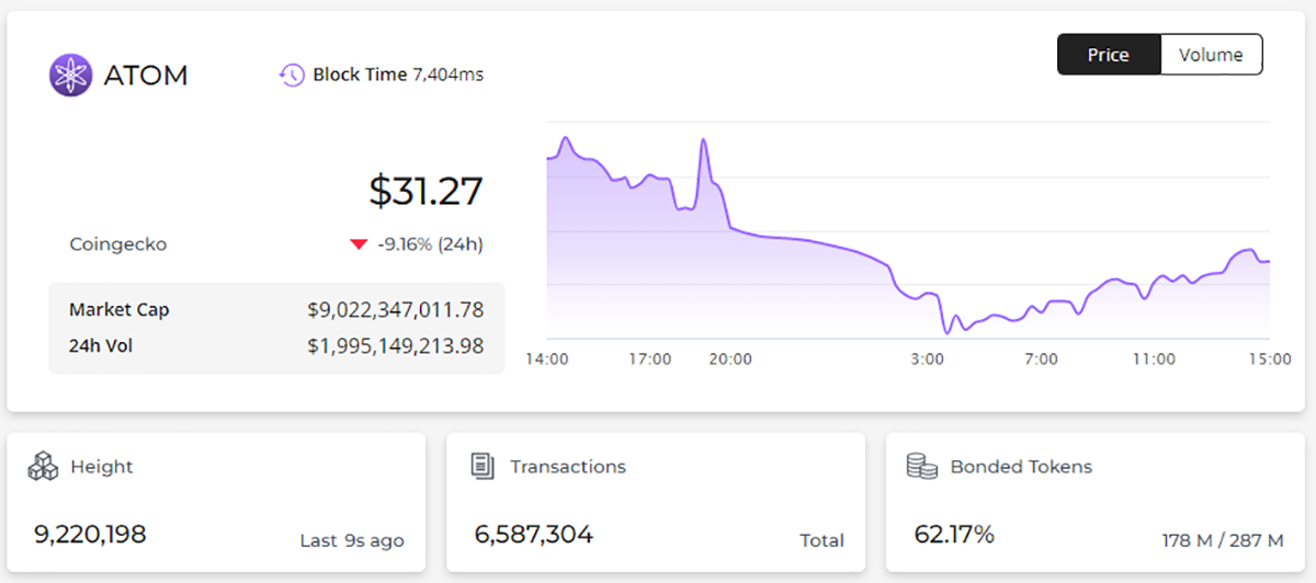The Cosmos Hub’s native token is the ATOM token, which has a market capitalisation of $10bn, according to CoinGecko. ATOM acts as a governance token allowing community members to vote on proposals about the Hub’s future. Holders can stake ATOM to secure the chain and earn staking rewards. Current rewards rates can be tracked at stakingrewards.com.