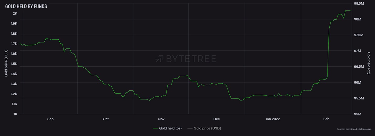 In our latest “Bitcoin & Gold in 2022” webinar, John Reade, Chief Market Strategist of the World Gold Council (WGC), estimated that while more than 50% of institutional investors have exposure to gold in some shape or form (via equities/commodity indices etc), less than 10% have it as a strategic portfolio allocation. In other words, less than 10% of investment institutions own it for its core qualities of protecting against inflation and political crisis. Yet these are precisely the circumstances that stare us in the face today.