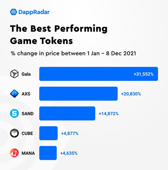 According to the BGA blockchain game report, the GALA token price increased over 31,500% in 2021, making it one of the best-performing assets across the whole industry.