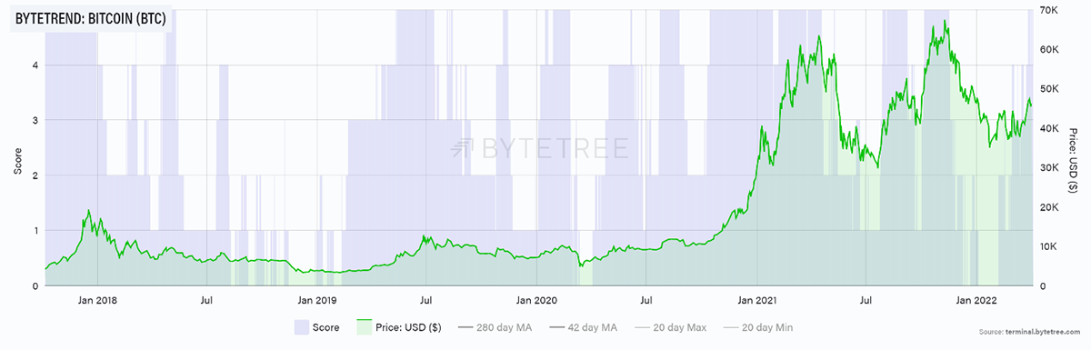 Source: ByteTree. ByteTrend for Bitcoin (BTC) since January 2016.