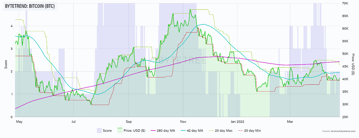 Source: ByteTrend. ByteTrend for BTC, measured in USD, over the past year.