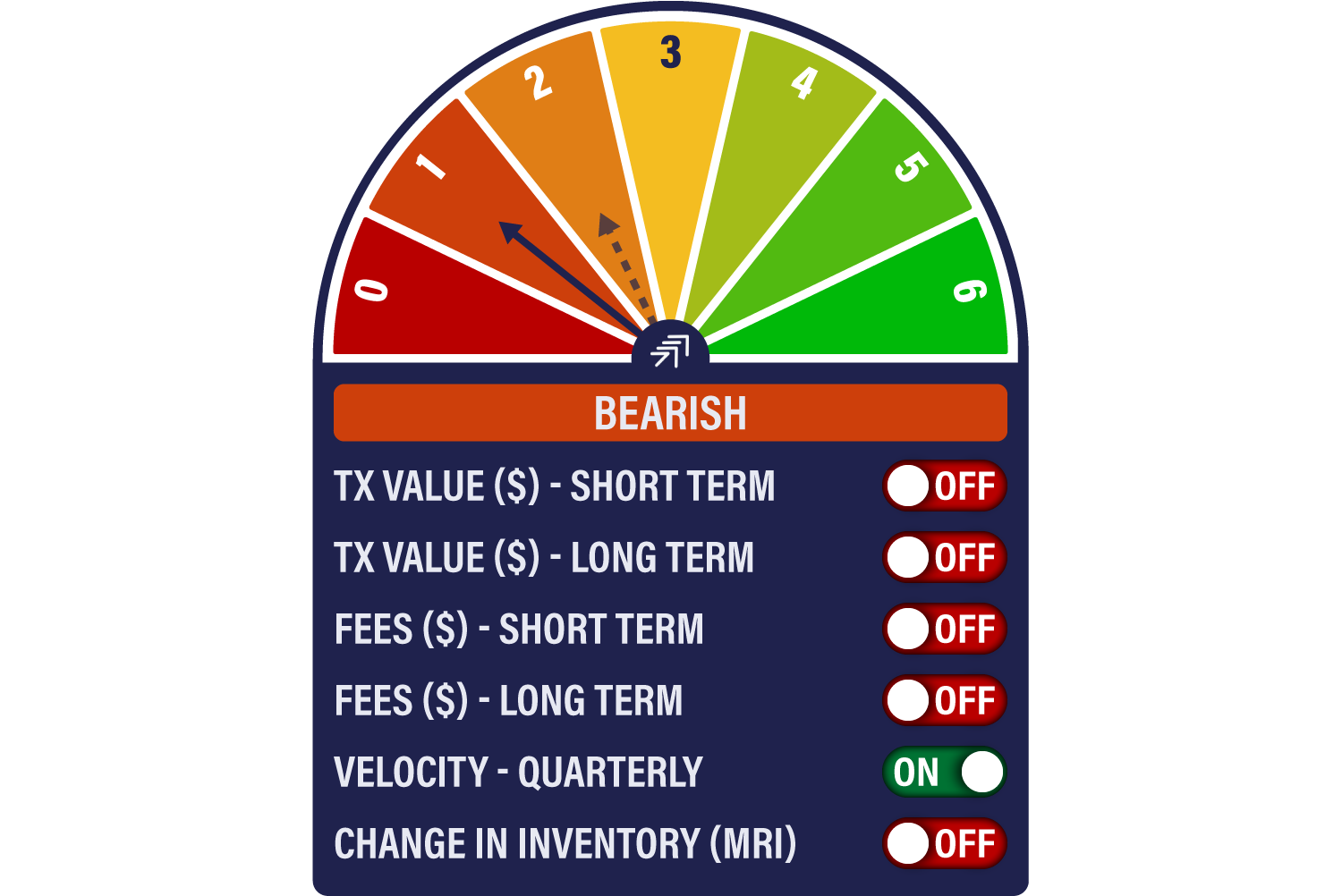 The Network Demand Model score declines to 1/6 as the short-term transaction signal once again turns off. The other 5 signals have been mainly off since June 2021.