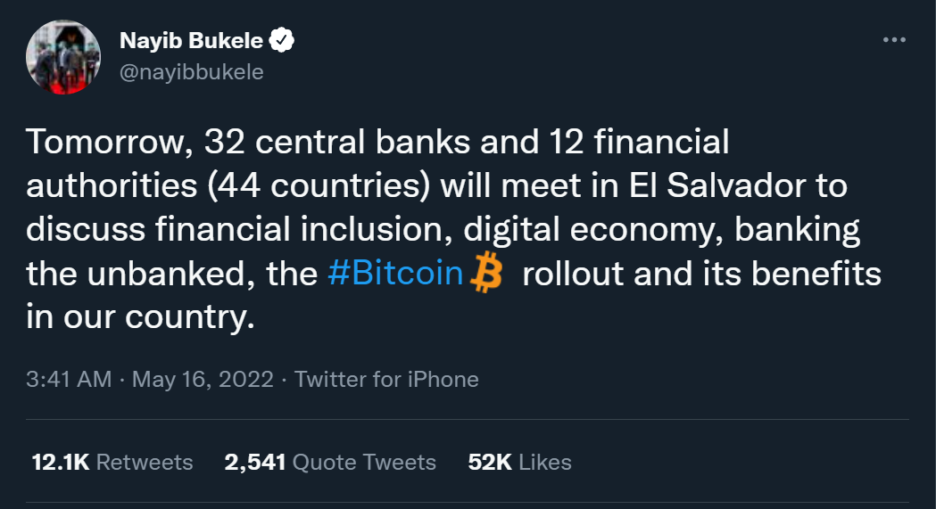 Nayib Bukele, the President of El Salvador, announced a surprise meeting in a Twitter thread yesterday.