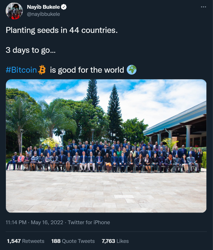 Just over 8 months ago, El Salvador became the first country to adopt Bitcoin as legal tender. With around 70% of the adult population classified as unbanked, and 24.1% of the country’s GDPoriginating from personal remittances, Bitcoin sure seems like an attractive solution for a nation that is trying to distance themselves from the US dollar (their other legal tender). Interestingly, at the time, Bukele was criticised for choosing BTC over a stablecoin, but I think the events over the past couple of weeks may have put the final nail in that coffin.