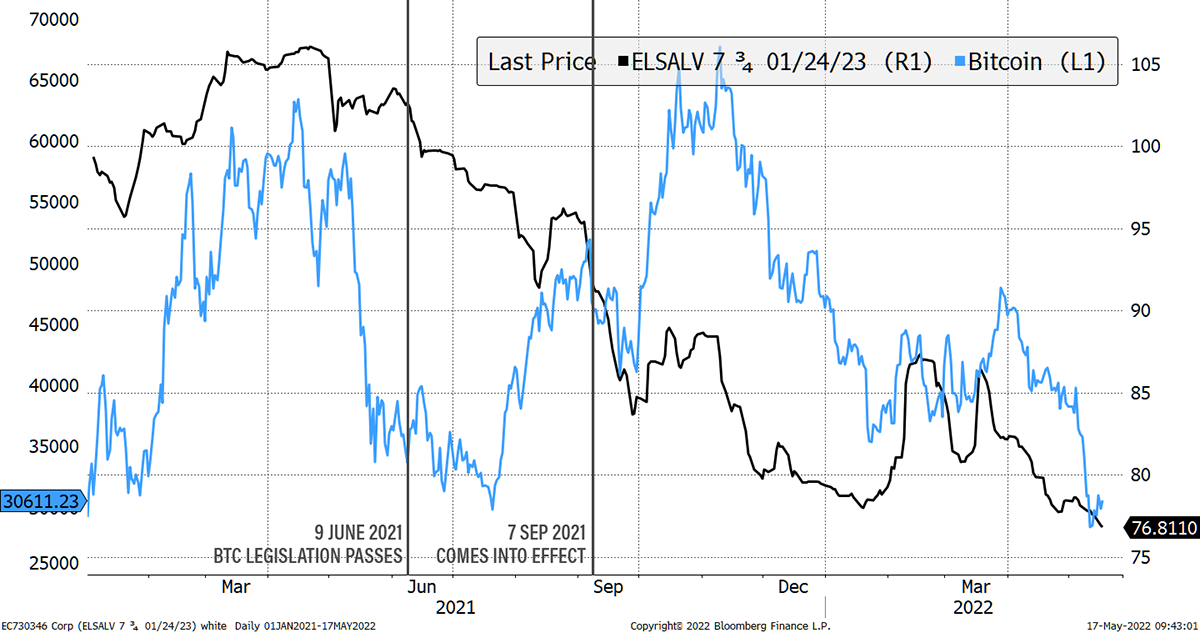 The El Salvador bond, which redeems at $100 next January, trades at $76. Given the coupon is 7¾%, that’s not bad at all, assuming they repay. Presumably, the market thinks they won’t. According to Bloomberg, that’s a 51% Gross Redemption Yield for the brave.