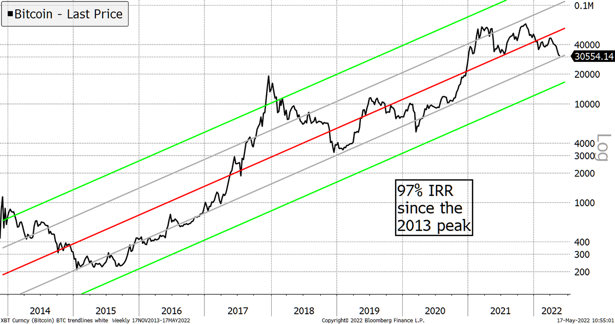 That is telling you something, and bitcoin is supposed to be an inflation hedge. It is, but much more so following a 50% + selloff than when it is full of hot money. Most assets are inflation hedges when prices are low, and nothing is when prices are too high. You cannot reasonably expect an asset to be an inflation hedge at any price.