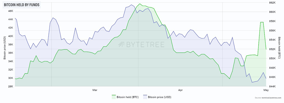Source: ByteTree. Bitcoin held by funds over the past three months.