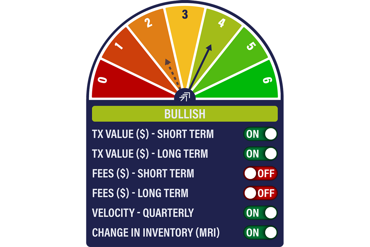 The price shock is down to external events. TERRA has been dumping bitcoin to support their algorithmic stablecoin, and back in the real world, the NASDAQ has been tanking. The Network Demand Model turned bullish on Sunday. That means the network is growing, and price will follow. We have upgraded the dial to bull market.