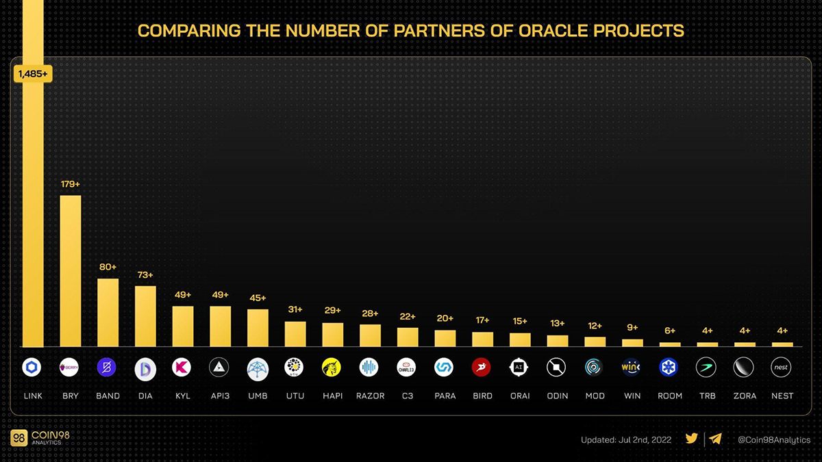 When we previously reviewed Chainlink in January 2022, Chainlink was by far the most dominant DON in the digital assets space, with over 1,091 partners. Fast forward seven months, and Chainlink is still the market leader with over 1,485 partners. This means Chainlink Labs has been able to onboard over 320 projects in 2022 alone.