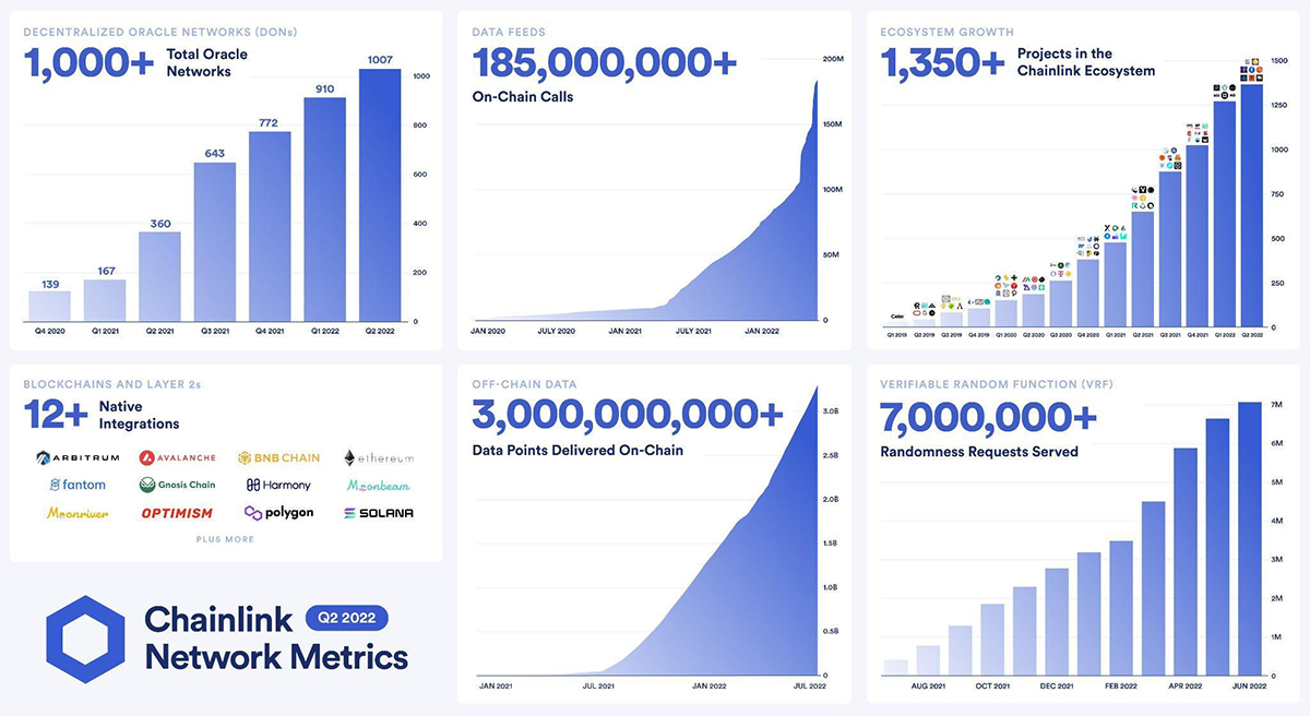 To date, Chainlink is integrated with 16 different blockchains, from well-known layer-1 blockchains such as Ethereum, BNB and Cardano to lesser-known projects like Moonriver and Harmony One.