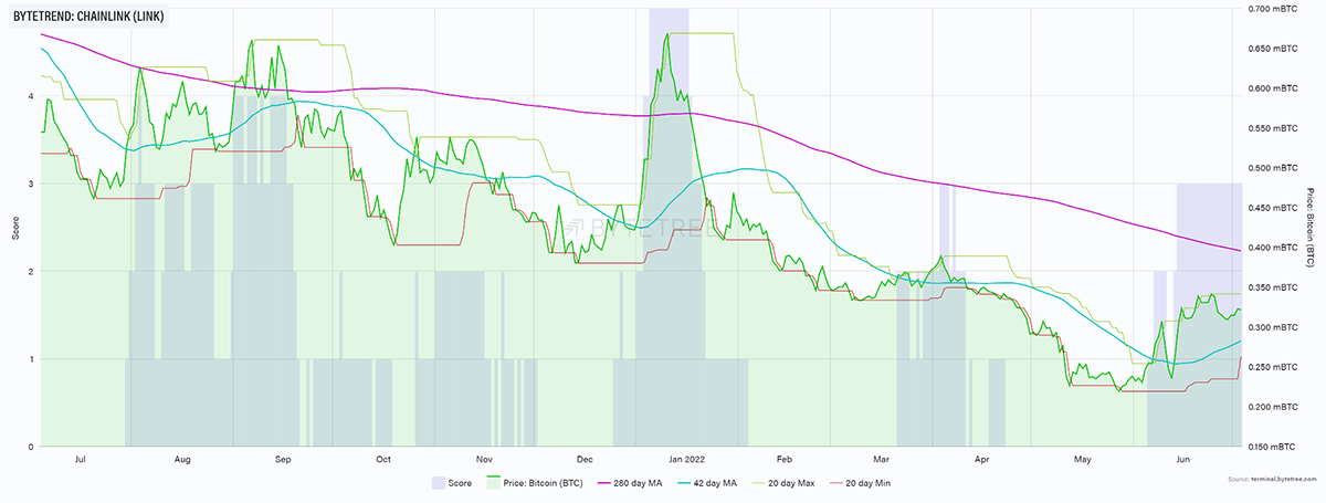 As seen from the ByteTrend graph above, the LINK price performance is in a downtrend. However, with the introduction of LINK staking in Q4 2022, we believe that this graph will look very different in a few months.