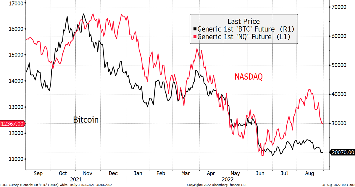 When two very different asset classes, such as bitcoin and tech stocks, have an unusually high correlation, it’s a fair bet to assume it will reverse.