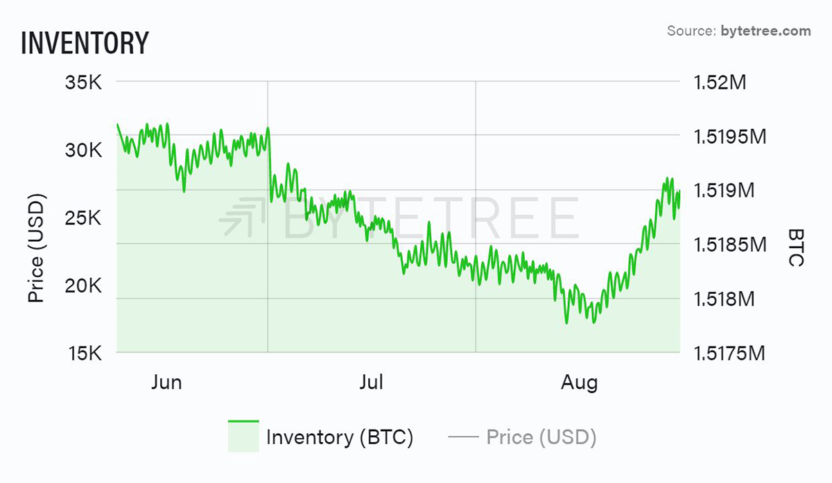 Source: ByteTree. Bitcoin (miner) Inventory over the past 12 weeks.