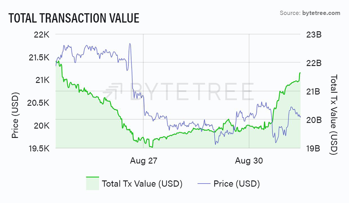Source: ByteTree. Bitcoin Total Transaction Value over the past week.