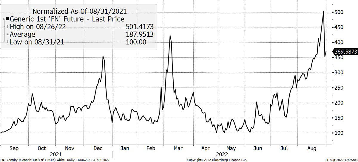 Ultimately, what we need is a recovery in demand. In this regard, the last few days have offered encouragement. Activity has notably picked up, as shown below. Perhaps it’s a “return-from-holiday” effect, but the August apathy appears to be over, and some sizeable blocks have been absorbed by the market at current levels (as shown on the Reference chart on the Terminal). You can follow the data on the site under the “Charts” heading.