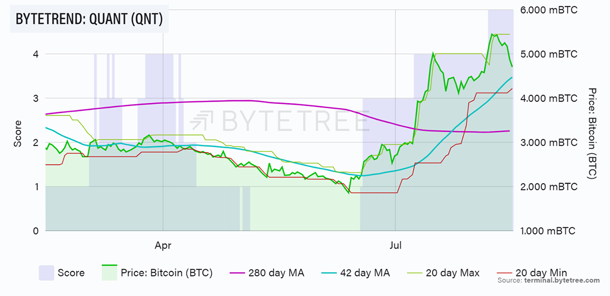 Finally, QNT currently holds a five-star rating on ByteTrend against BTC. This shows a strong price action and a powerful trend against the largest crypto asset.