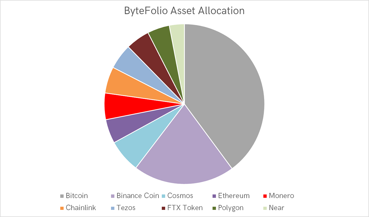 ByteFolio brings together ATOMIC, ByteTrend and Token Takeaway to create ByteTree’s model portfolio, known as ByteFolio. This is a selection of crypto tokens, which are weighted according to their risk/reward characteristics. ByteFolio has a modest turnover and will not suit traders. It will appeal to investors who wish to diversify beyond bitcoin, with the aim to beat it.