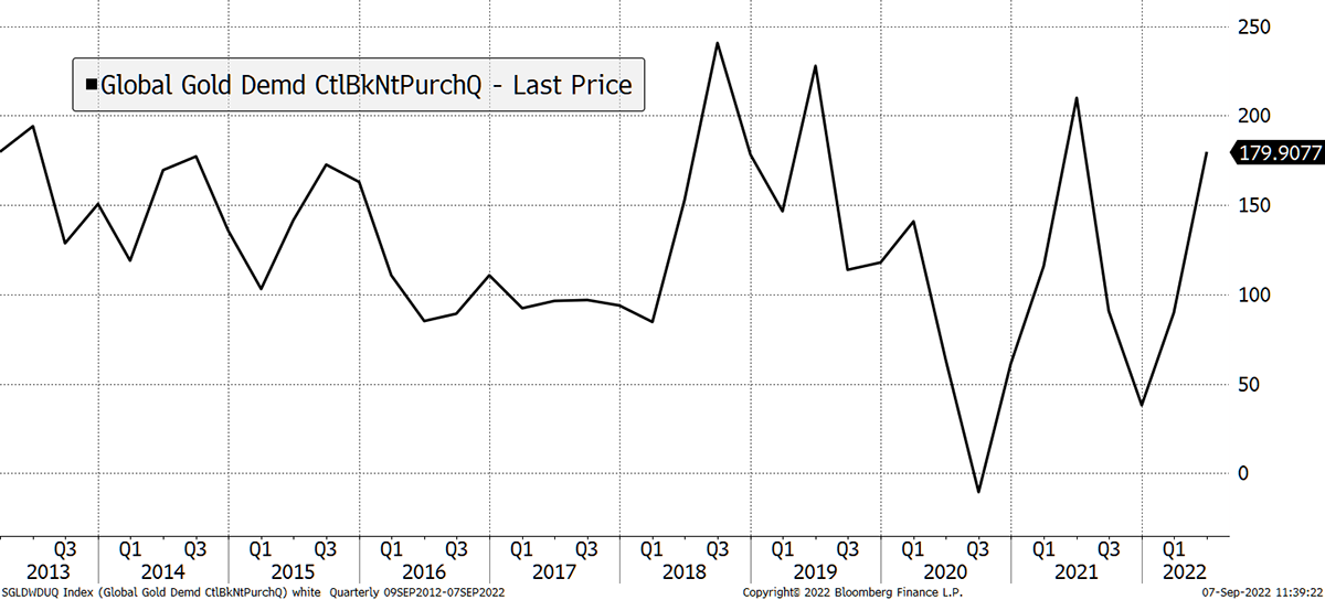 But someone is buying their gold, and it’s the central banks, who have been net buyers every quarter bar one since 2013. Which quarter? They sold in Q3 2020, right at the top of the market.