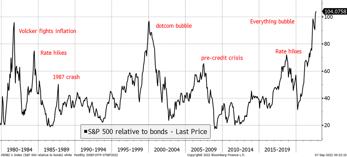 The trouble with US equities, which are nearly keeping up with gold, is that they are stretched to the limits. While gold is close to fair value, US equities are rich on most measures, especially against bonds.