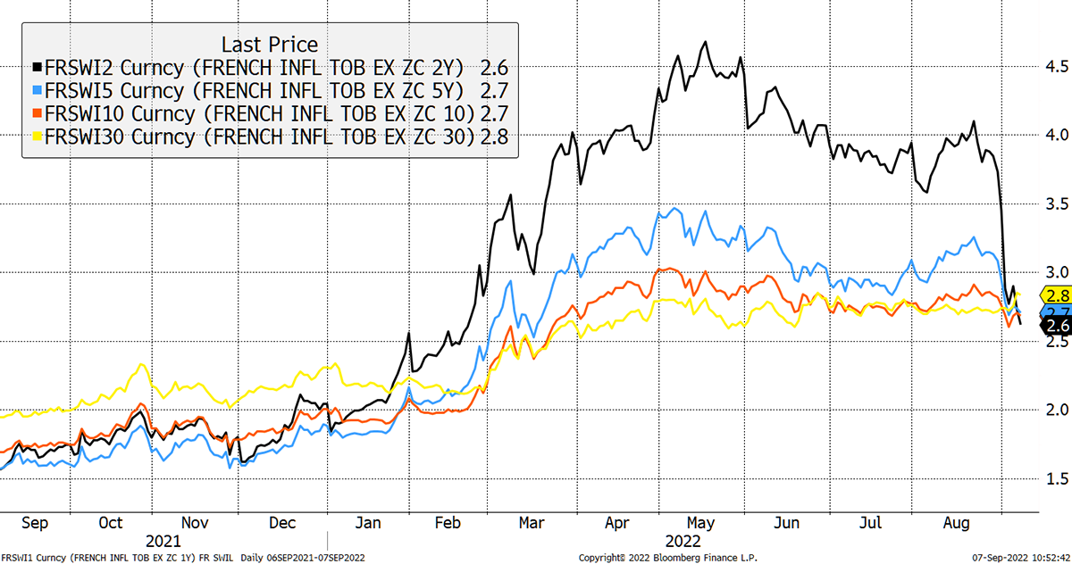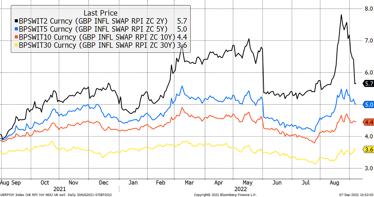 Looking across the ocean, inflation expectations have collapsed in the UK too. This is all very recent and so a bit early to congratulate our new prime minister, Liz Truss, but it’s there for the eye to see.