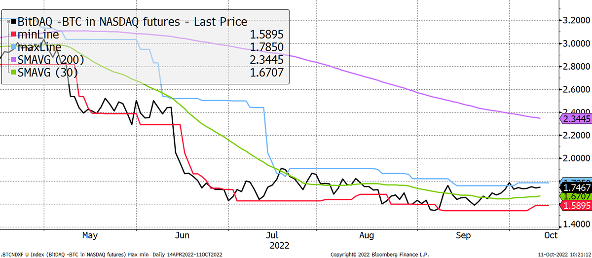BitDAQ, bitcoin in NASDAQ, holds 3-stars. This relative resilience in the face of carnage in TradFi (traditional finance bonds, equities etc.) is starting to look credible.