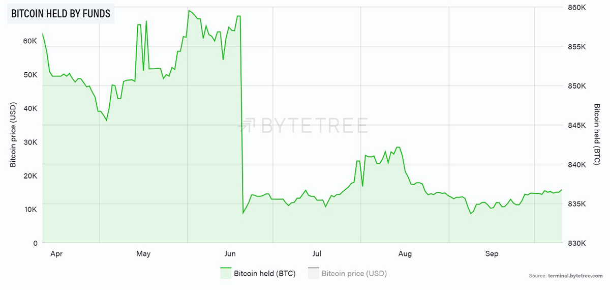 Source: ByteTree. Bitcoin ETF flows (BTC) over the past six months.