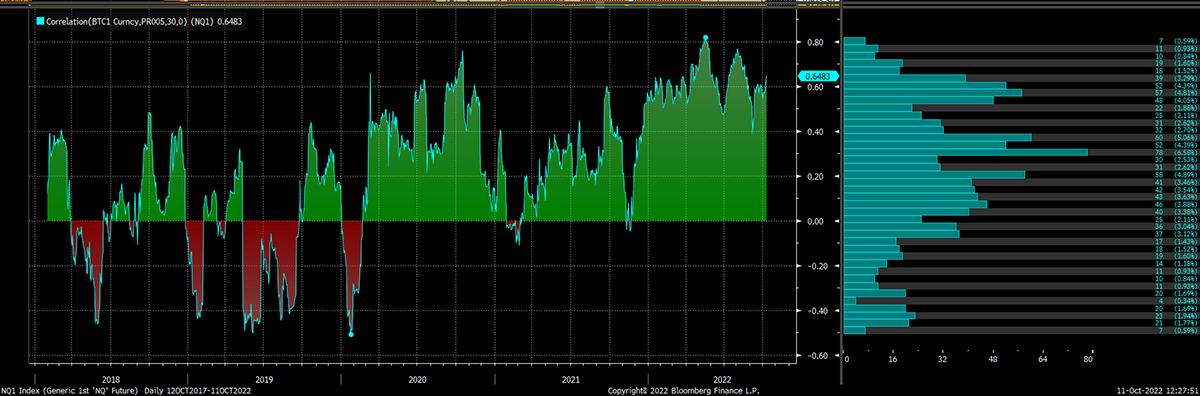 Bitcoin has long been correlated with equities, but this year, it is off the scale. The hope is that it starts to fall, but we live in hope.