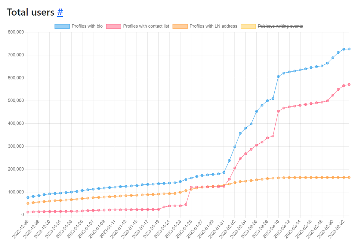 You might want to keep an eye on this abbreviation of a nasal cavity. Seriously, Nostr has lit up the crypto community, and while not growing at the same rate as ChatGPT, it isn’t doing too badly.
